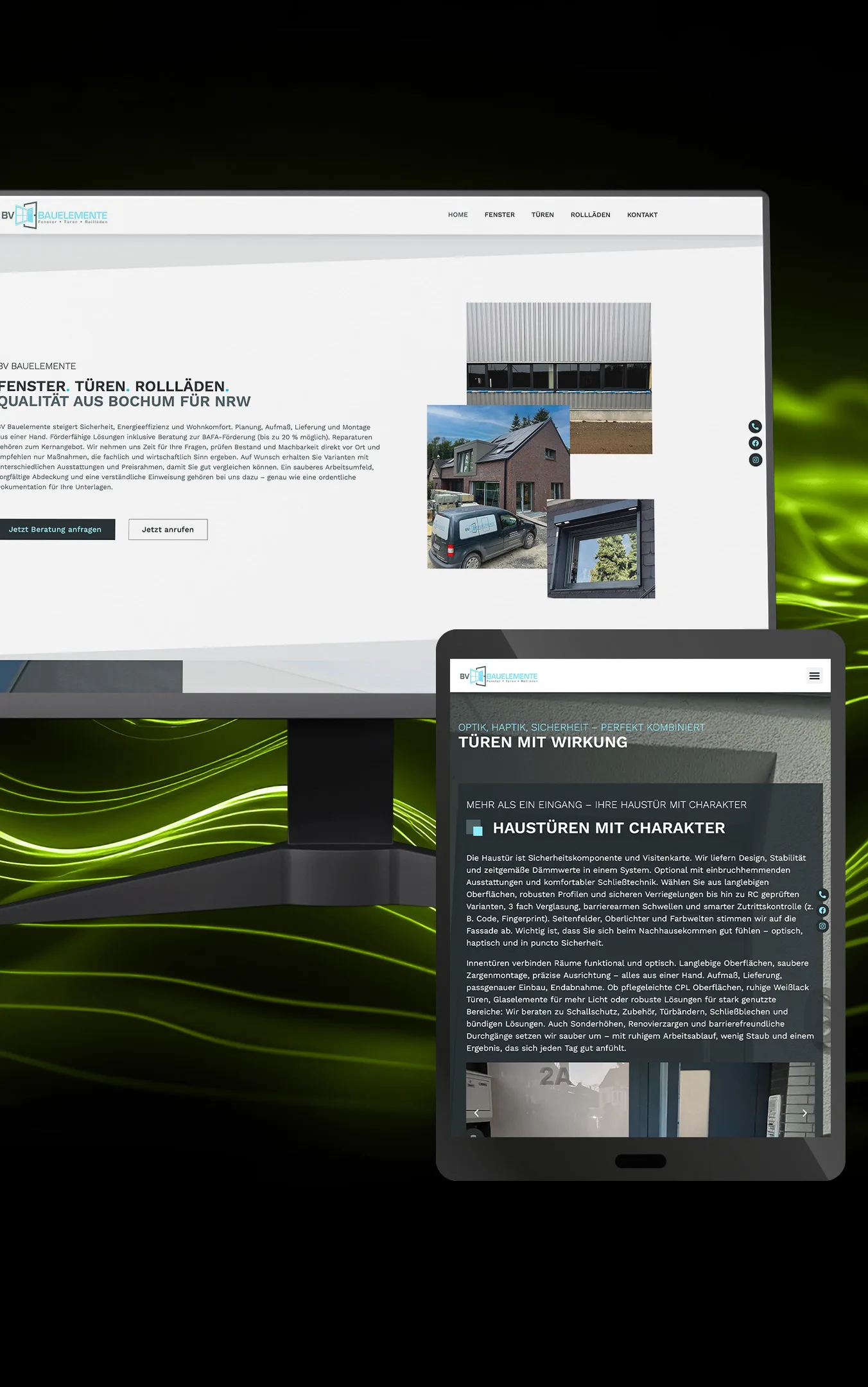BV Bauelemente ist ein regionaler Spezialist im Bereich Fenster, Außentüren und Sonnenschutz-Lösungen für Wohn- und Gewerbeobjekte. Mit langjähriger Erfahrung bietet das Unternehmen individuelle Montage- und Lieferleistungen – von Fenstern über Türen bis hin zu Wintergarten- und Insektenschutz-Systemen – und legt großen Wert auf Qualität und Kundenzufriedenheit im Handwerk. Für BV Bauelemente haben wir den Webauftritt komplett neu gestaltet und modernisiert – mit einem zeitgemäßen Design, verbesserter Nutzerführung und optimierter Darstellung der Leistungen.
