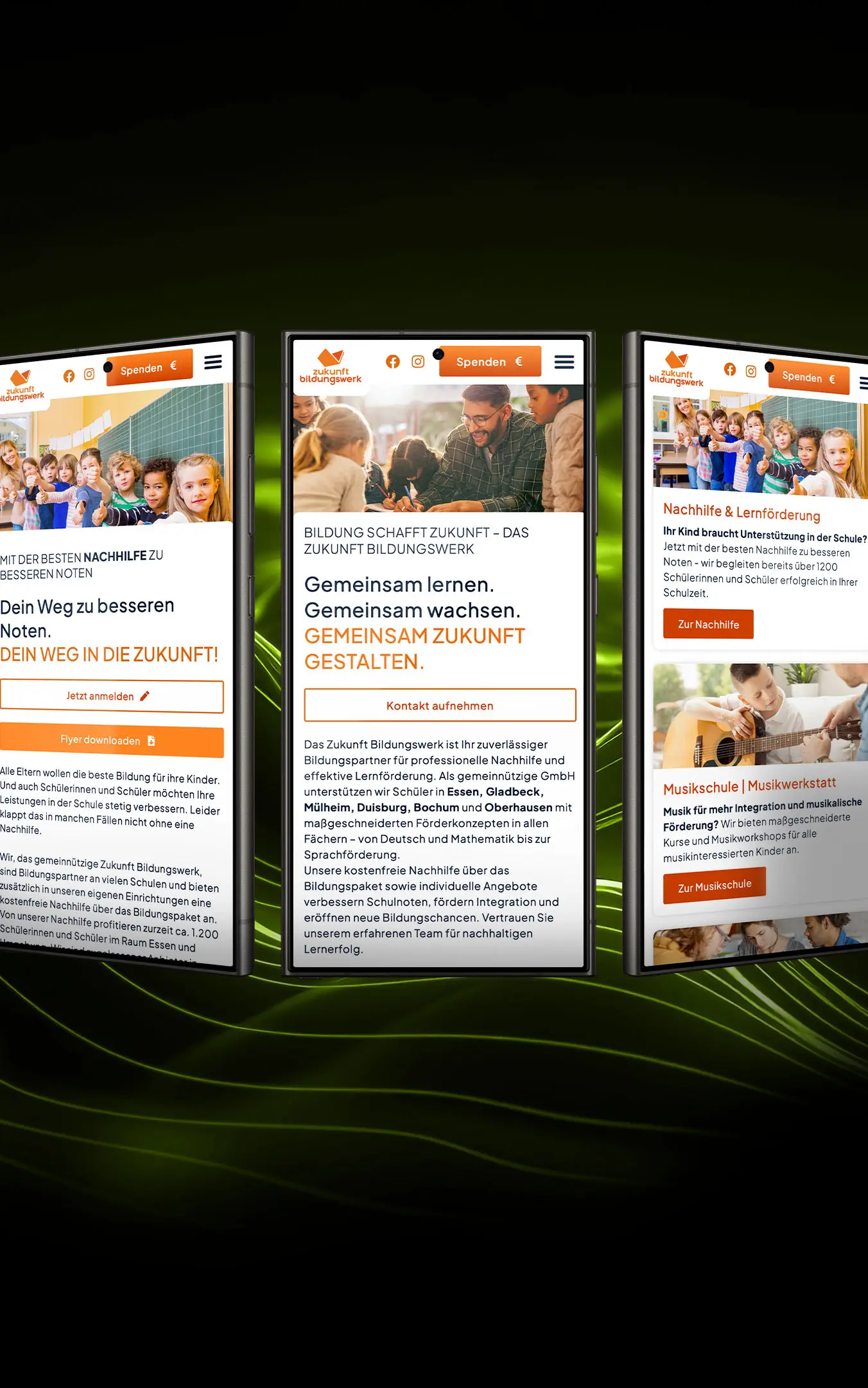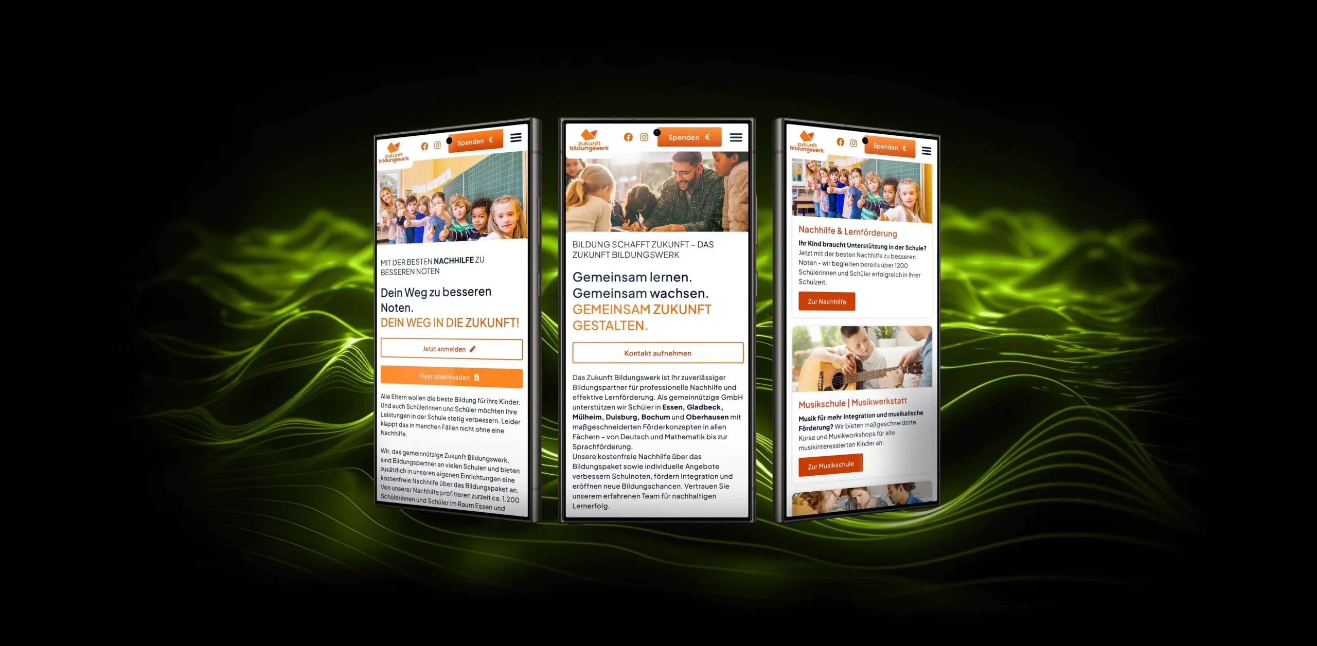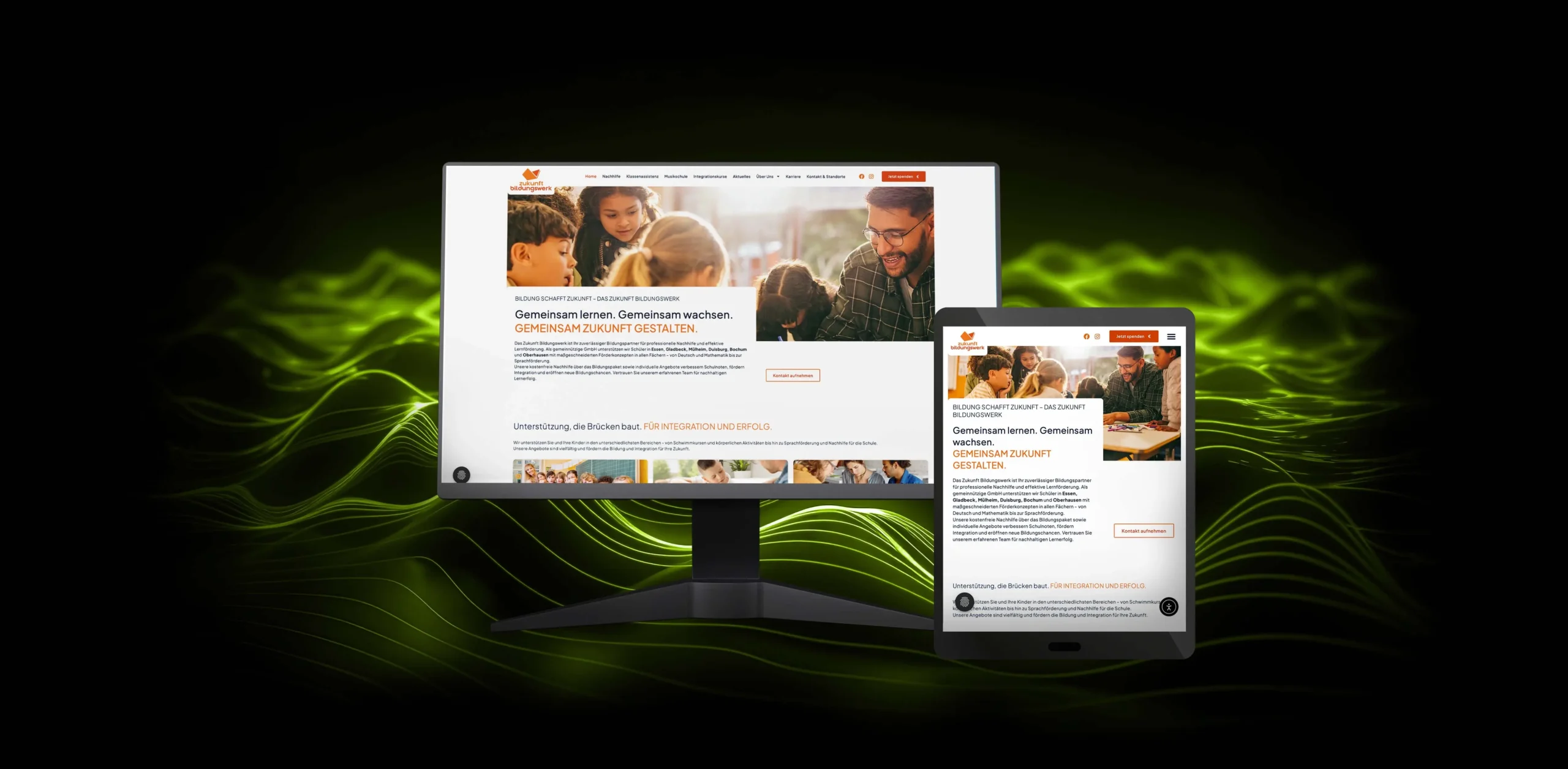 Als engagierter Bildungsdienstleister schafft Zukunft Bildungswerk Räume für schulischen Erfolg, sprachliche Entwicklung und gesellschaftliche Teilhabe. Wir haben den Webauftritt überarbeitet und visuell modernisiert – mit responsivem Layout, übersichtlichen Leistungsseiten und ansprechender Darstellung der vielseitigen Bildungsangebote.